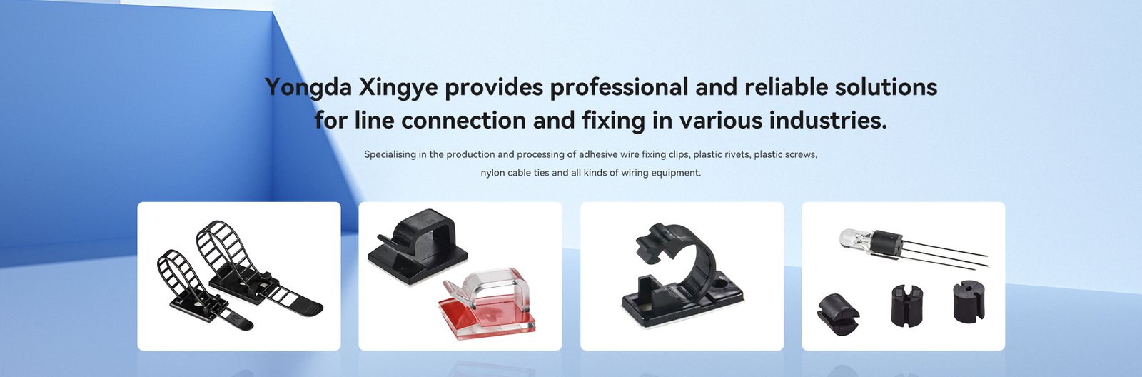 Shenzhen Yongda Xingye Wiring Technology Co., Ltd. is a professional production and processing company of adhesive wire fixing clips, plastic rivets, plastic screws, nylon ties, wiring equipment and other products, with complete and scientific quality management system. The company's integrity, strength and product quality has been recognised by the industry. Welcome friends from all walks of life to visit, guidance and business negotiation.